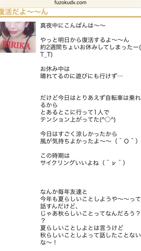 2015年からってビックリ!!2015年から2017年まで写メ日記を続けてるって偉くないですか?しかも旅行へ行った話やサイクリングした話まで日常系ブログをしっかり書いてるの本当に偉い!!