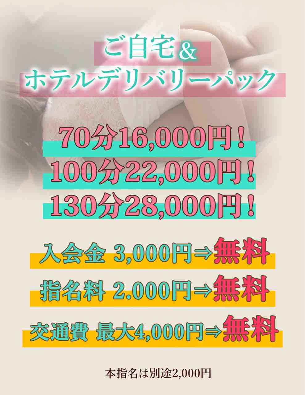 今ならご自宅&ホテルデリバリーパックもお得で、大久保以外のエリア(都内)でもお安く遊ぶことができます。