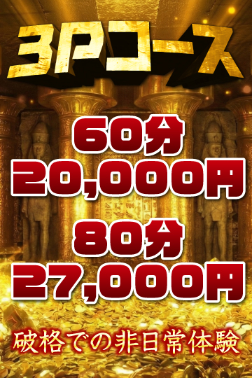 もし妻カーラのニュースタンダード!3Pコース解禁中!2026-04-05 16:52 更新 男の夢と憧れが詰まった3Pがしたいけど中々手が出せない・・・そんな声にお応えすべくもし妻カーラが新たな試みを始めました!もし妻カーラ3Pコース60分:20,000円80分:27,000円※17時以降+1,000円※レズプレイ不可※ご予約不可※受付後の変更は不可※プレイ後のアンケート必須※+3,000円で1名のみ指名可※本指名は+5,000円で1名のみ指名可刺激的な非日常をもし妻カーラだけの衝撃価格で!