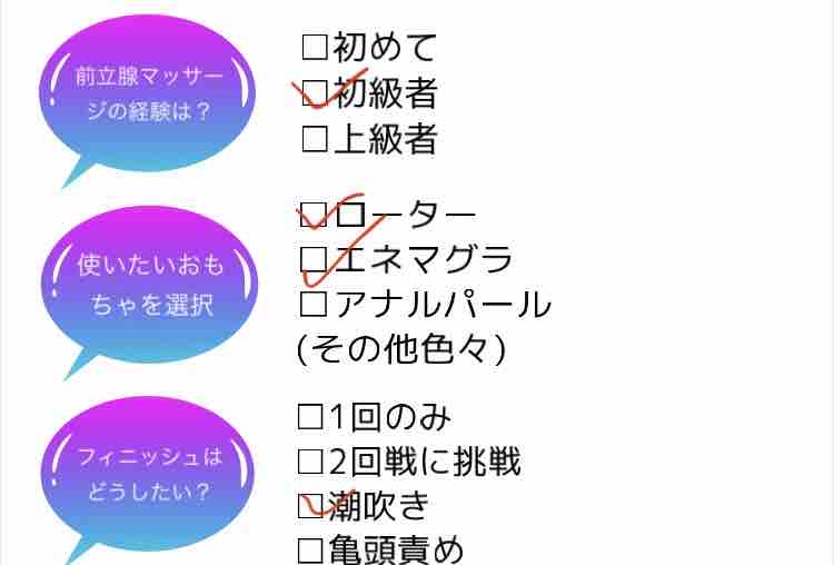 芝刈り機はM性感初級者なので正直ビビってますが、アナル系含めなるべく色々なプレイをお願いしました。
